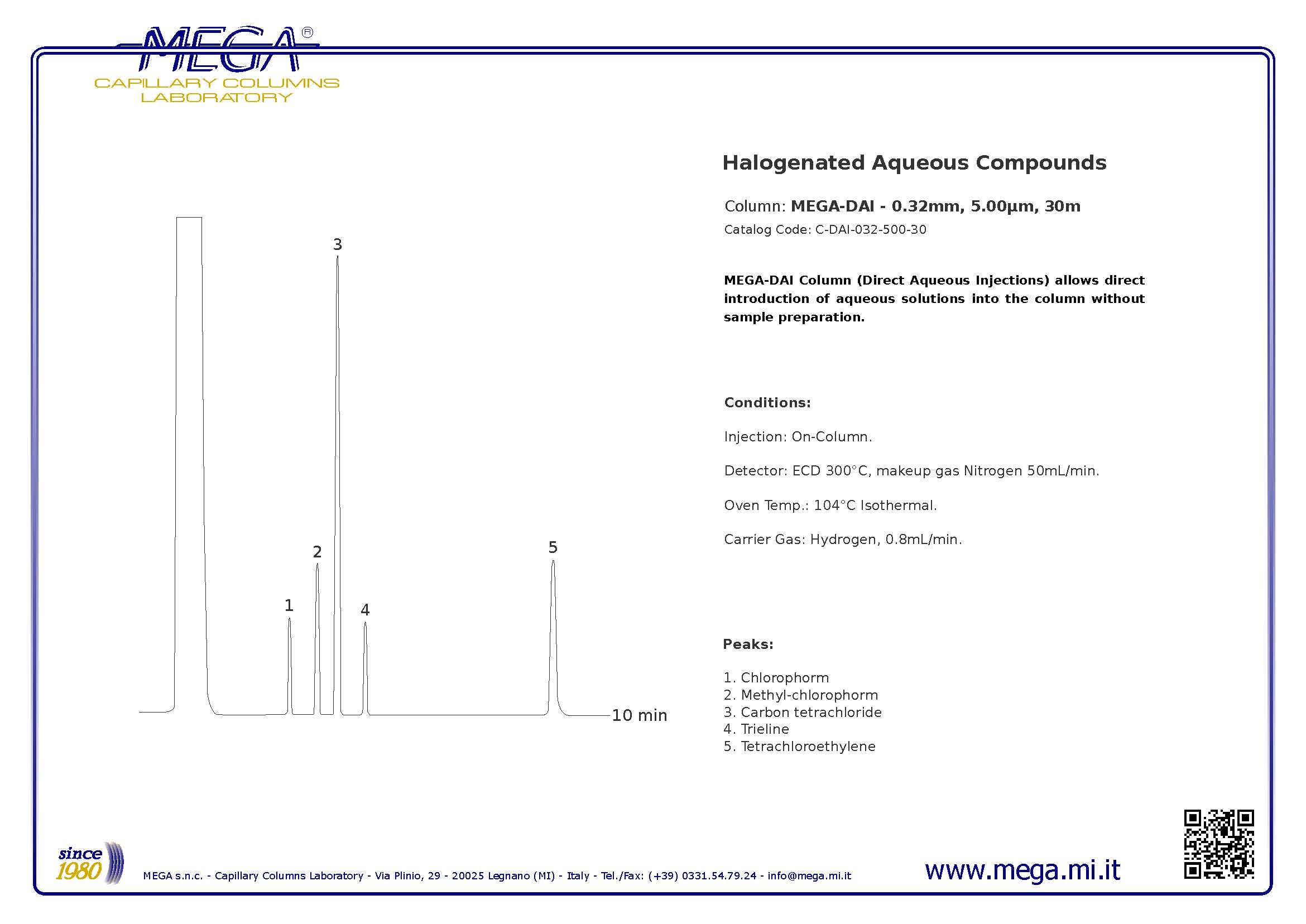 MEGA-DAI氣相色譜石英毛細(xì)管柱固定相經(jīng)過特殊的修飾和處理,可以將檢測的水樣直接在氣相色譜儀進(jìn)樣,無需進(jìn)行任何前處理,保證檢測上述組份時數(shù)據(jù)重現(xiàn)的一致性。
