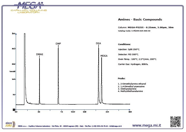 甲基二乙醇胺(MDEA)的氣相色譜分析柱-MEGA-PS255  請(qǐng)下載:胺類(lèi)堿性化合物的分析.pdf