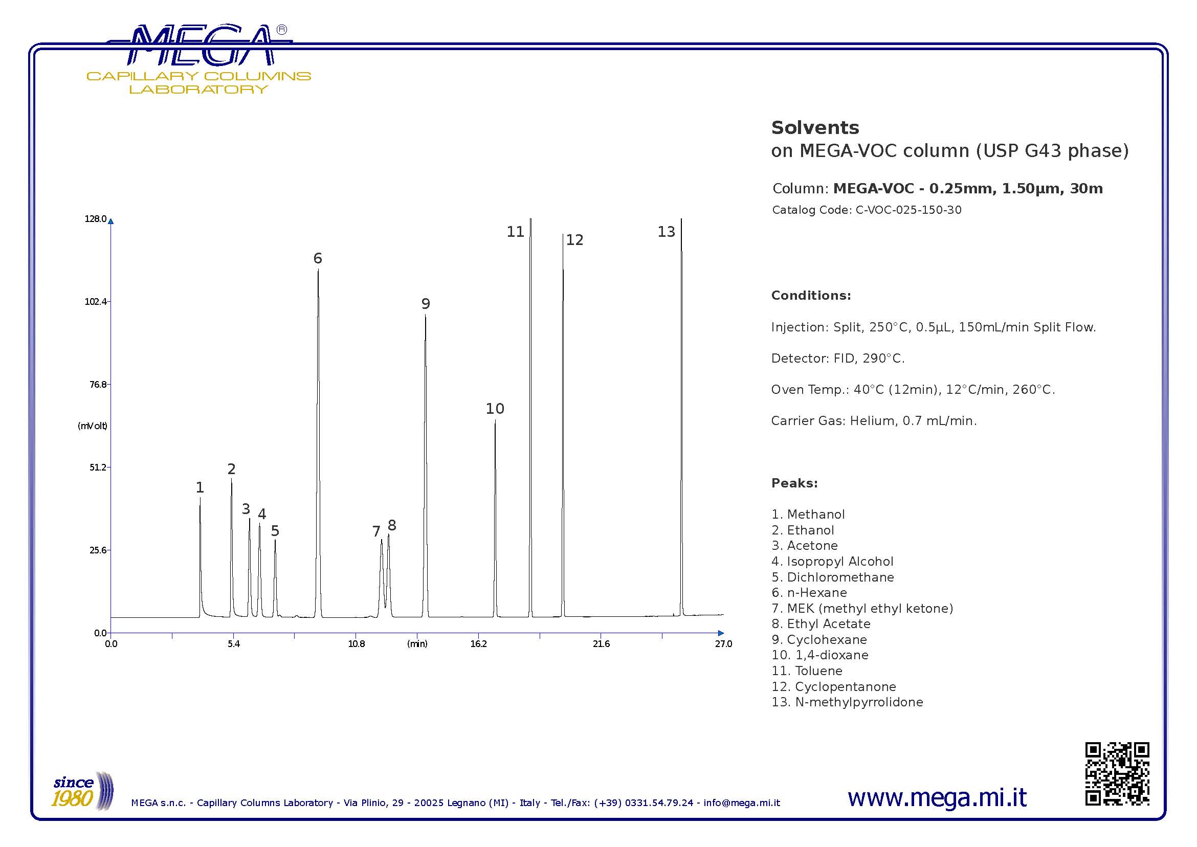 依據(jù)YC/T 207-2006煙草行業(yè)標(biāo)準(zhǔn)《卷煙條與盒包裝紙中揮發(fā)性有機(jī)化合物的測(cè)定: 頂空氣相色譜法》,我們向印刷廠、油墨生產(chǎn)企業(yè)推薦具有30多年專業(yè)生產(chǎn)和研發(fā)石英毛細(xì)管柱的意大利MEGA公司產(chǎn)品-MEGA-VOC。