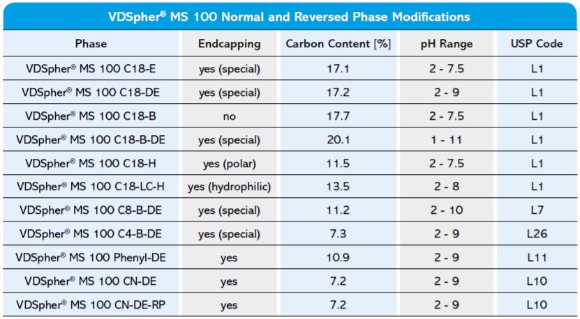 VDSpher MS 液相色譜-質(zhì)譜分析柱填料
